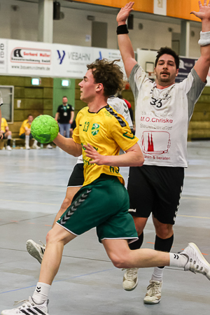 Entsprechend gut gelaunt zeigte sich Rodriguez nach der Partie: „So wie wir in der zweiten Hälfte aufgetreten sind, stelle ich mir das vor. Das war ein emotionaler, geiler Kampf, der uns auch letzte Saison zum Erfolg gebracht hat.“ Gelpe/Strombach II hatte seinen Kader mit Michiel Lochtenbergh und Felix Maier verstärkt. Besonders die acht Tore des Rechtsaußen Maier sollten Gold wert sein. Doch bis zum 13:18 (37.) sah es nicht so aus, als ob der HC endlich die Negativserie beenden kann. Über 7:7 (16.) und 9:14 (26.) waren die Gastgeber durchgängig einem Rückstand hinterhergelaufen. Vor allem Kai Uwe Klause bekam die HC-Defensive überhaupt nicht in den Griff.