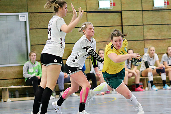 Beim 9:9 (16.) fiel der Ausgleich, nur wenig später folgte die erste Führung beim 11:10 (18.). Verbesserungsbedarf bestand zur Pause noch defensiv. Remmers drehte an den richtigen taktischen Stellschrauben, spätestens beim 27:20 (40.) war der Wille des Gegners gebrochen. „Man sah beiden Teams an, dass sie vom Samstag bereits ein Spiel in den Knochen hatten, uns aber einen Tick weniger“, so Remmers. Während die Gäste mental und körperlich nachließen, funktionierten die Wechsel beim HC nahtlos. „Das war heute einfach richtig geil. Unser System funktioniert“, meinte Remmers, der Celine Blumberg ein überragendes Spiel auf der Mitte attestierte.