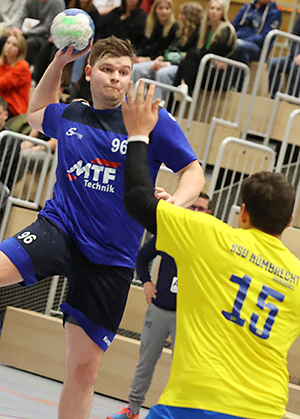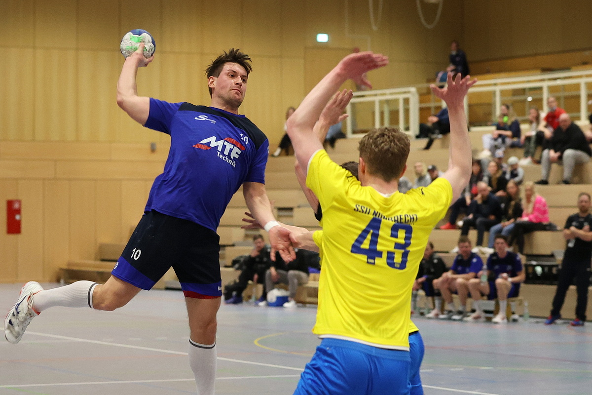 [Hier ist Marcel Neese noch erfolgreich gegen Lukas Kirchner. In den Schlusssekunden behielt der Nümbrechter Keeper aber die Oberhand und wurde zum Helden des Abends aus Gästesicht.]