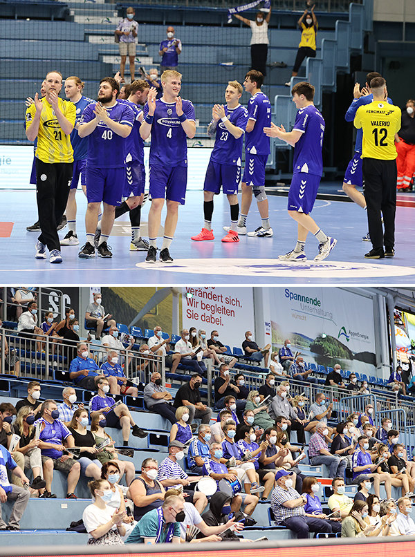Erstmalig seit langer Zeit wieder mit zumindest einem Teil seines Publikums im Rücken hat der VfL Gummersbach am Abend den HC Elbflorenz aus Dresden verdient geschlagen und so die kleine Aufstiegschance gewahrt. Die 1.000 zugelassenen Zuschauer in der SCHWALBE arena applaudierten der Mannschaft nach der Schlusssirene und auch den Spielern war die Freude nicht nur über den Sieg, sondern auch über die Kulisse anzumerken.