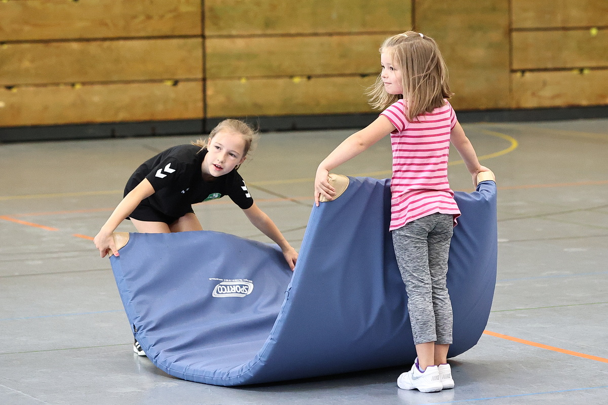 Es hat etwas von kontrolliertem Chaos, was in den vergangenen sechs Wochen in der Gummersbacher Eugen-Haas-Halle stattfand. Überall flitzen Kinder und Jugendliche über das Spielfeld, turnen, spielen und trainieren – es herrscht reger Betrieb in jeder Ecke der altehrwürdigen Halle. Mittendrin die Trainer und Übungsleiter des HC Gelpe/Strombach, die dafür sorgen, dass alles in geregelten Bahnen abläuft und nie ausufert.