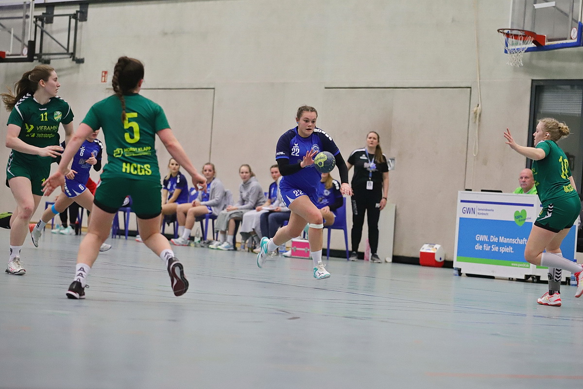 Doch Nümbrecht hatte eine Antwort. Finja Hock und Celine Mosberger brachten den SSV wieder in Vorhand, die neunfache Torschützin Sabrina Heinrichs machte den Deckel drauf. "Das war ein 50:50-Spiel. Am Ende war Nümbrecht einfach cleverer und hat sich den Sieg verdient. Der SSV steht eben nicht von ungefähr so weit vorne. Aber wir werden weiter Gas geben. Für uns ist das kommende Spiel gegen Leverkusen wichtig", so Daniel Rodriguez. Natürlich freute sich Nümbrechts Trainerin Martina Duckart über den Sieg, gab aber auch zu: "Wir hätten uns auch nicht über ein unentschieden beschweren dürfen." Sonderlob der Trainer gab es für die Torhüterleistungen. Johanna Baum und Vanessa König auf HC-Seite sowie Nadine Fischer beim SSV zeigten etliche starke Paraden und sorgten so dafür, dass keine Mannschaft davonziehen konnte.