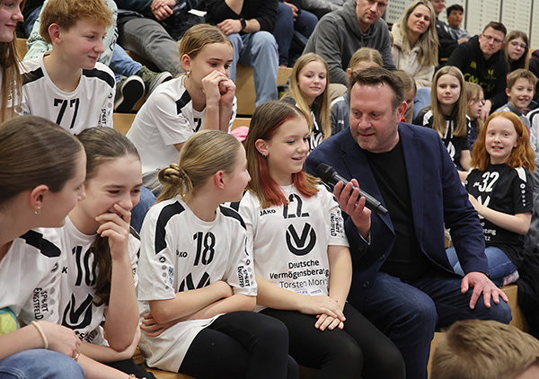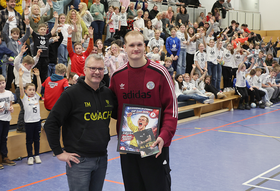 Rund 400 Zuschauer sorgten am Freitagabend in der Voss-Arena für echtes Nationalmannschafts-Flair: Beim "Meet & Greet" mit Handball-Nationaltorhüter David Späth war die Halle fest in der Hand der Handballjugend des SV Wipperfürth und vielen weiteren Gästen. Organisiert wurde der Abend von der Geschäftsstelle der Deutsche Vermögensberatung (DVAG) in Kooperation mit der Jugendabteilung des SV Wipperfürth.