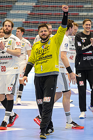 Auch VfL-Coach Gudjon Valur Sigurdsson rang auf der Pressekonferenz nach dem Spiel zunächst ein wenig nach Worten. „Heute ist kein einfacher Abend“, begann er sein Statement. Unfassbar stolz sei er auf seine Mannschaft, vor allem auf ihren kämpferischen Willen und auf das, was sie geleistet habe, sagte er. Erlangen habe zwar verdient gewonnen, „trotzdem sind wir selbst schuld, dass wir verloren haben. Wir hätten es besser und cleverer machen können.“ In dieselbe Kerbe schlug auch Kreisläufer Jonas Stüber, dessen Vertragsverlängerung vor dem Anpfiff bekanntgegeben wurde (siehe Extra-Bericht): „Natürlich ist unsere Enttäuschung groß. Nicht der HC Erlangen hat uns geschlagen, sondern wir haben uns selbst geschlagen.“
