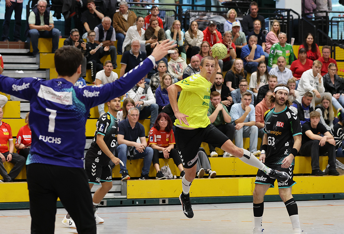 Als die Gastgeber dann aber nach ihrem gelungenen Auftakt zwei Zeitstrafen kurz hintereinander kassierten, nutzten die Essener ihre numerische Überlegenheit, um sich auf vier beziehungsweise drei Treffer abzusetzen (10:14/13. beziehungsweise 15:18/28.). Dennoch hatten die Oberberger die Gelegenheit, mit einem geringeren Rückstand als dem Drei-Treffer-Malus in die Kabine zu gehen. Als man neun Sekunden vor dem Pausenpfiff auf 17:19 verkürzte, hatte man nämlich ganz enge Tuchfühlung mit den Ruhrgebietlern, die aber exakt mit der Sirene noch ihr 20. Tor markierten.