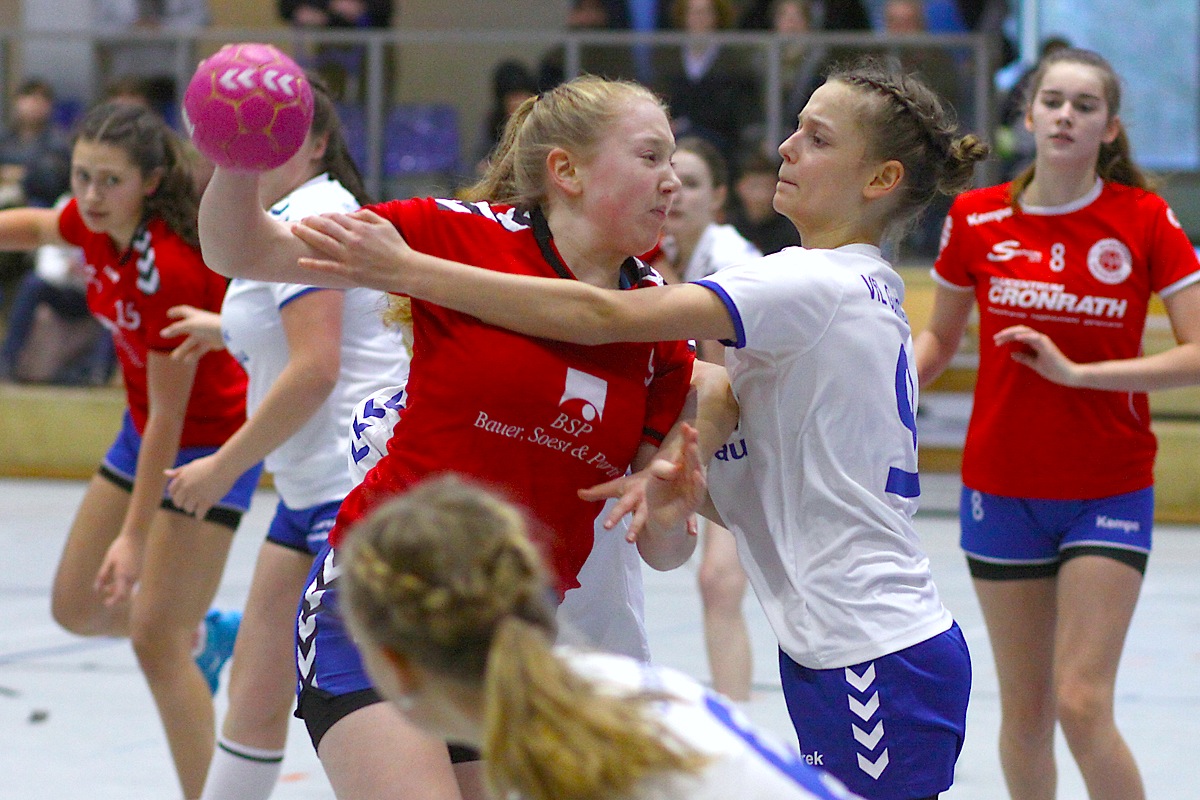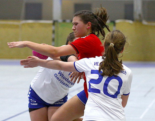 Bis zum 6:6 (15.) entwickelte sich ein offener Schlagabtausch, anschließend übernahmen die Gäste das Kommando, nachdem die JSG ihr Trainergespann Meyer/Klein nicht nur mit etlichen Fehlwürfen zur Verzweiflung brachte, sondern auch das unter der Woche einstudierte Deckungssystem kaum umsetzte. Über 6:9 (16.) und 8:13 (21.) gingen die jungen Gummersbacherinnen mit einer keineswegs unverdienten Führung in die Pause.