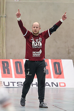 Warum Nümbrechts Trainer trotzdem bereits nach 100 Sekunden seine erste Auszeit nahm? Die Hausherren waren von Thieles Taktik schlicht überrascht worden: Die Gäste agierten aus einer sehr offensiv ausgerichteten und laufintensiven Deckung. Der SSV vergaß hiergegen zunächst die Laufarbeit ohne Ball. „Natürlich bestand die Gefahr, dass wir sie beim Blick auf die Aufstellung unterschätzen, darum habe ich sehr schnell korrigierend eingegriffen“, sah Seinsche sein Team dann doch zum 4:1 (7.) vorlegen. Erheblichen Anteil an dieser Führung hatte Torhüter Tom Rydzewski mit bereits sechs Paraden zu diesem frühen Zeitpunkt.