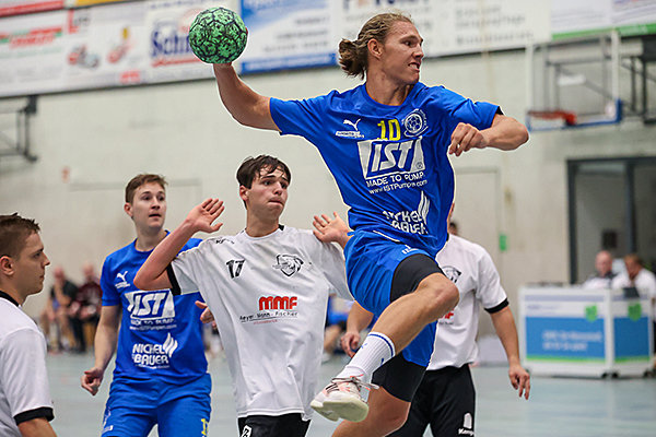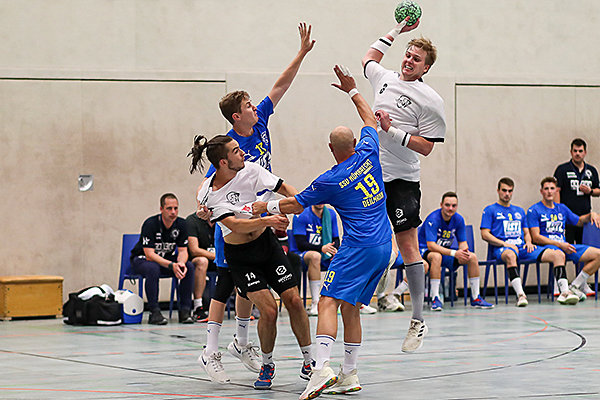 Überhaupt fand der Südkreis-Vertreter bis zur Pause nie ein probates Mittel gegen die gut arbeitende Löwen-Defensive. Nahezu jedes Nümbrechter Tor resultierte aus der ersten und zweiten Welle, weil die HBD-Angriffe zu offensichtlich auf Tobias Mlynczak und Felix Soldanski designed waren. Über 4:4 (12.), 8:6 (16.) und 11:6 (23.) dauerte es einige Zeit, ehe sich der Tempohandball der Gastgeber durchsetzte. Thiele haderte nach den ersten 30 Minuten vor allem mit dem Rückzugsverhalten seiner Mannschaft: „Wir kriegen es nicht hin, von Angriff auf Abwehr umzuschalten, egal wie häufig ich das predige. Damit ist der Rucksack nach der Pause einfach zu groß.“