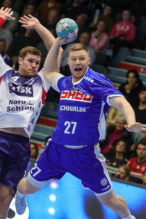 Über 18:27 (39.) und 21:34 (47.) drohte den Hausherren zwischenzeitlich sogar ein Debakel. Dass es nicht so weit kam, lag vor allem an Miro Schluroff (Foto), der nun mehrfach traf. 27:37 (53.) und 30:40 (56.) waren die weiteren Zwischenstände bis zum 32:42-Endstand. „Am Ende auch in der Höhe verdient“, fand Sigurdsson, der den Fans für 60 Minuten „tolle Stimmung“ dankte, „auch wenn wir das heute so nicht verdient haben“.