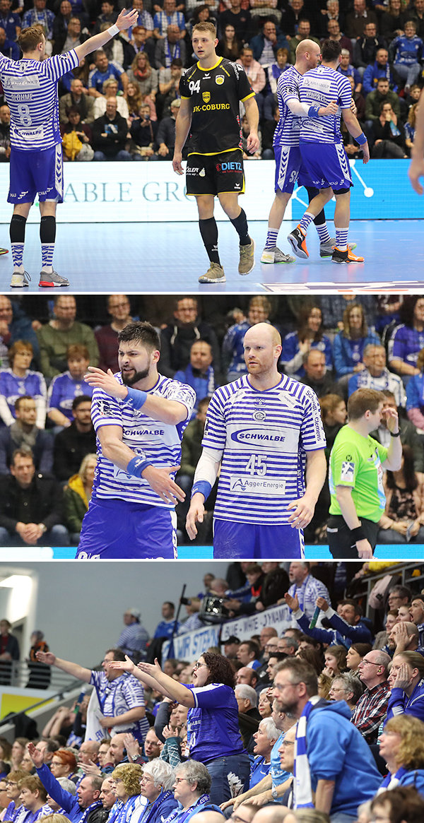 Ohne Mut und Tempo, vielmehr mit angezogener Handbremse habe sein Team agiert und sich so vom Spitzenreiter der Zweiten Liga weitgehend abkochen lassen. Denn kaum jemand der 3378 Zuschauer in der Gummersbacher SCHWALBE arena glaubte beim 19:23 (52.) noch wirklich an einen Punktgewinn der Oberberger. Coburg tat den Hausherren aber den Gefallen, zog gleich mehrere Zeitstrafen und öffnete den Blau-Weißen die Tür zurück in die Partie. Lukas Blohme startete die Aufholjagd mit dem 20:23, der eingewechselte Yonatan Dayan und erneut Blohme sorgten für den 22:23-Anschlusstreffer (55.). Zwar musste auch Gummersbach anschließend in Unterzahl agieren – Tin Kontrec hatte Pontus Zettermann rüde gestoppt – der VfL hatte die Handbremse aber endlich gelöst.
