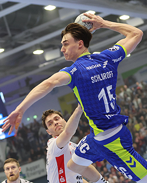 ["Ich hab in den letzten Spielen bei der EM nicht so viel auf der Platte gestanden. Da war also noch ein bisschen Energie", scherzte Miro Schluroff nach dem Match. Der Nationalspieler erzielte sieben Tore.]
