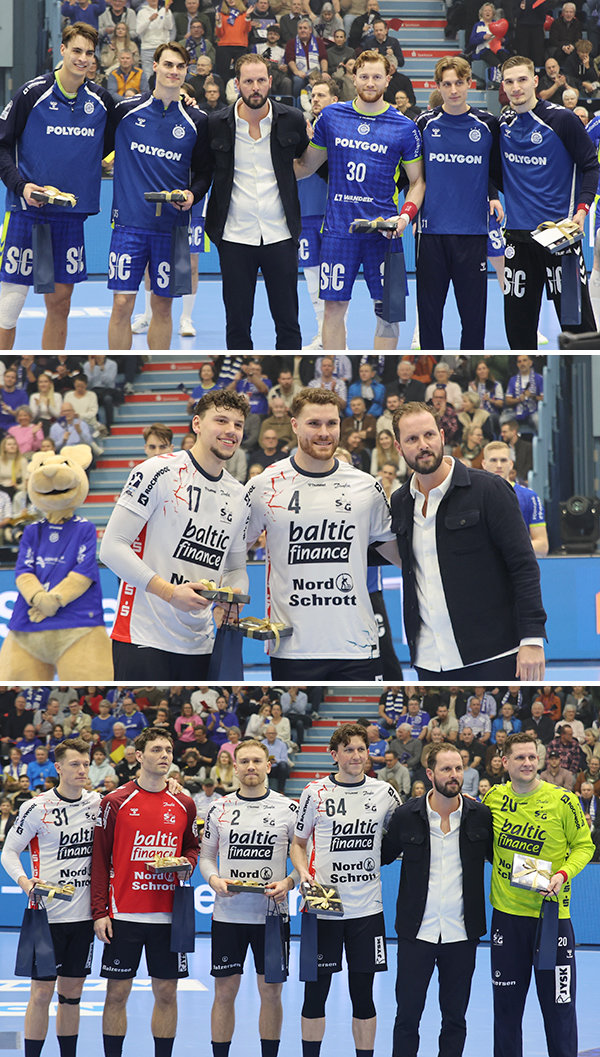 Flensburg: Emil Jakobsen (6/4), Simon Pytlick, Johannes Golla (je 5), Domen Novak, Lasse Möller, Marko Grgic (je 3), Niclas Kirkelökke (1).