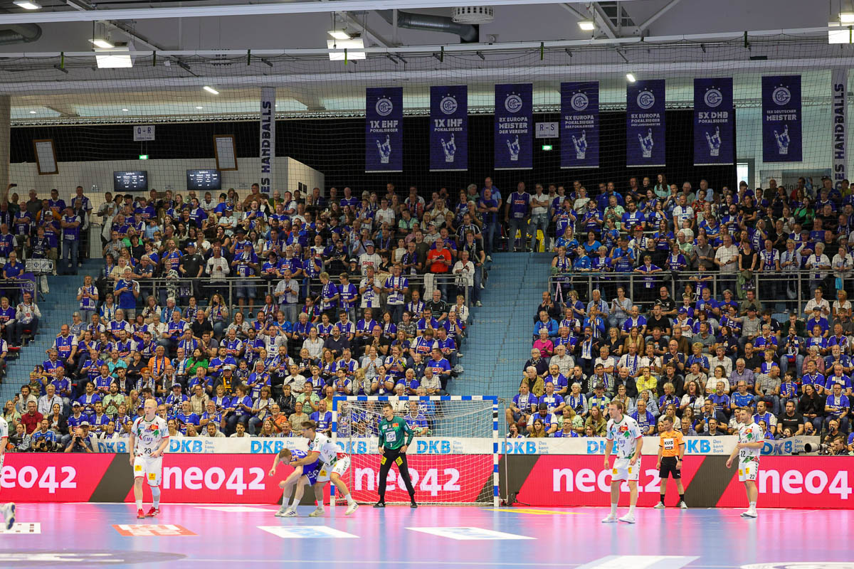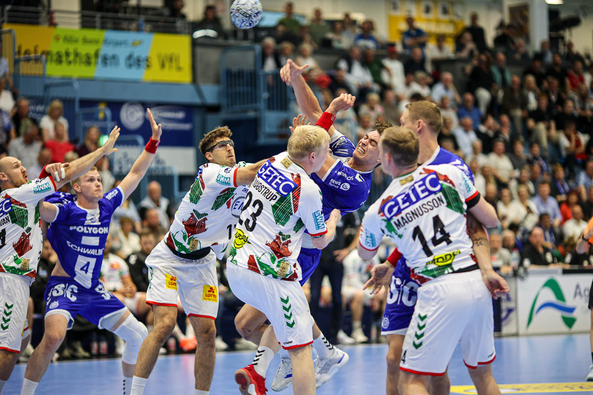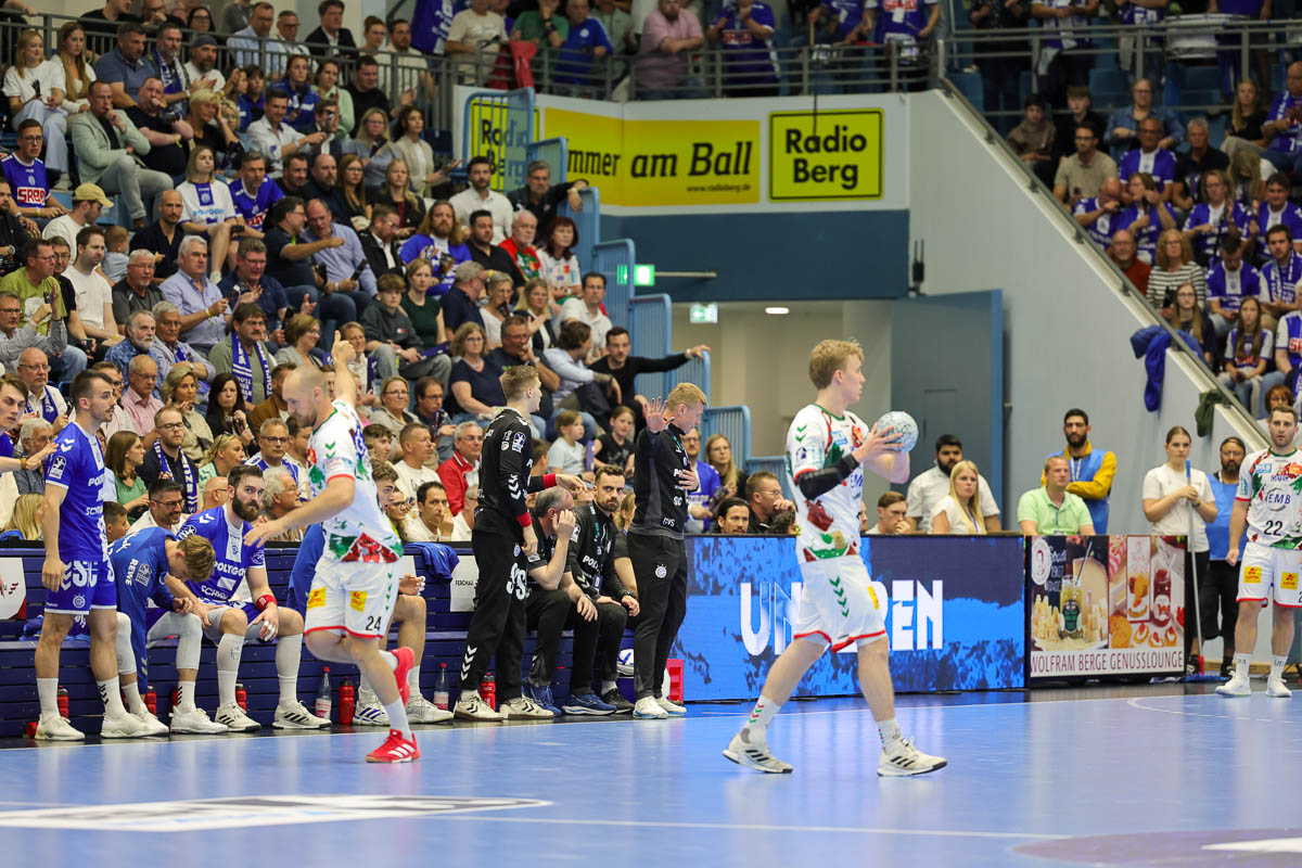 Schon zu Beginn der Partie hatte es in der Halle geknistert: Mit der Verkündung der Vertragsverlängerung von Miro Schluroff bis 2029 (siehe Bericht) brandete noch vor Anpfiff ein Orkan durch die Halle. Der Shooter wurde minutenlang von den Fans gefeiert. Sigurdsson sprach nach dem Spiel von „Gänsehaut-Atmosphäre“. Die Euphorie bekamen die Gummersbacher bis zum 0:2 (5.) zunächst aber nicht auf die Platte übertragen.