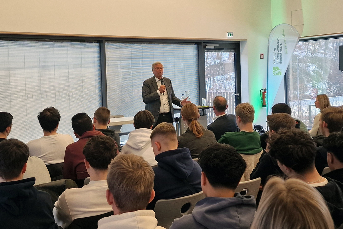 Dass die Zahl derjenige, die auch Mitglied einer Partei sei, in den vergangenen Jahren auf 1,5 Prozent gesunken sei, nannte er „einen traurigen Befund, denn Demokratie lebt von vielen Meinungen“. Der Schule komme dabei eine wichtige Rolle zu: „Sie hat nicht nur die Kernaufgabe der Wissensvermittlung, sondern ist auch ein sozialer Ort, an dem wir lernen, wie wir miteinander umgehen und wie wir diskutieren.“ Dabei sei die Hautfarbe, Religion oder die Frage, ob man eingebürgert wurde oder schon von Geburt an deutscher Staatsbürger ist, vollkommen egal. Er befürwortete eine Diskussion über Lehrinhalte an Schulen: „Der Umgang mit den sozialen Medien und einordnen zu können, was uns dort alles begegnet, ist heute genauso wichtig wie früher historische Daten auswendig zu lernen.“
