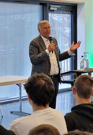 Zum Abschluss ermunterte er die Schüler, sich ebenfalls politisch zu engagieren: „Ich freue mich über jeden, der nicht kritisiert, sondern seinen eigenen Beitrag leistet. Demokratie funktioniert nicht ohne Demokraten. Bei allen Problemen, die wir haben, ist es immer noch ein Glück, in Deutschland geboren zu sein. Uns geht es besser als den meisten auf der Erde, aber das ist keine Selbstverständlichkeit.“