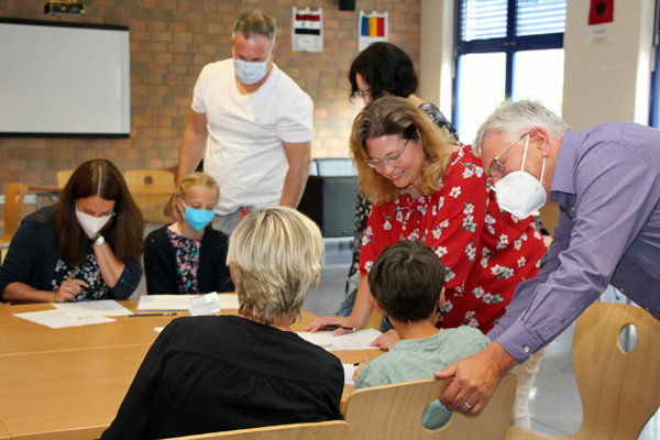 [Verkehrte Rollen: Bei der Siegerehrung mussten Eltern und Lehrer an den Matheaufgaben knobeln.]