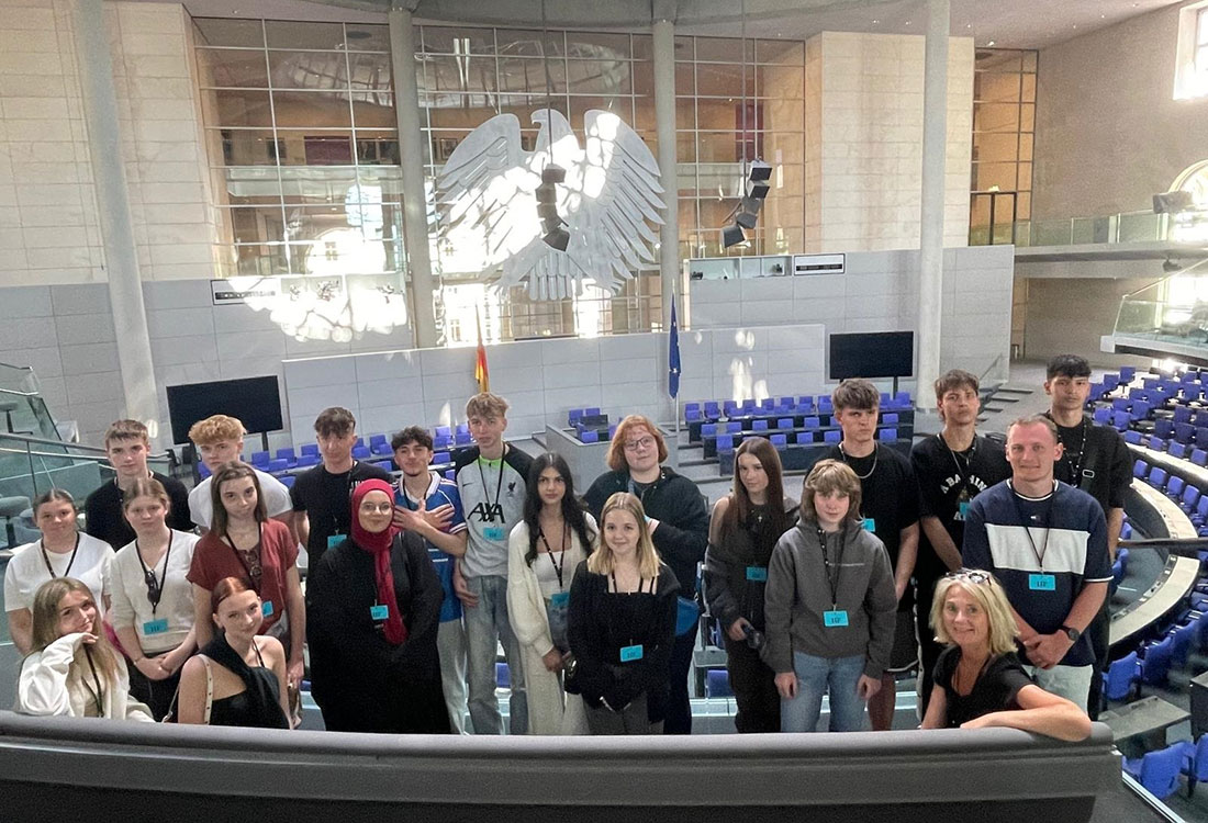 19 Schüler der Jahrgangsstufe 10 durften schließlich während einer Kursfahrt nach Berlin Politik hautnah erleben, als das Reichstagsgebäude am Tag der Europawahl besucht wurde.