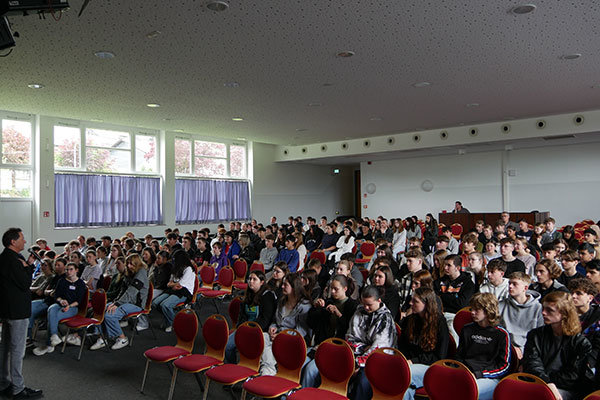 Kurz vor der Europawahl wurden dann die Schülerinnen und Schüler der Jahrgangsstufen 9 und 10 an die Wahlurne in der Aula gebeten. Dort konnten diese ihre Stimme für die Europawahl abgeben. Alles ging zu wie bei der"echten" Wahl, inklusive Wahlbenachrichtigung und Stimmzettel. Interessant war diese „Generalprobe“ vor allem für die bereits 16-jährigen Schülerinnen und Schüler der Jahrgangsstufe 10, denn sie duften erstmals aufgrund der Senkung des Wahlalters an der Europawahl teilnehmen. Alles Wissenswerte zum Thema Europawahl wurde vorher im Unterricht durchgenommen. Gut zu tun hatten auch die Wahlhelfer Lias Dick (9a), Tuana Colak (9b), Sena Zafer (9b), Sudenaz Sali (10a), Jana Klinkhammer (10b) sowie Leja Bent (10c), die die Wahl in der Aula durchführten und anschließend die Stimmzettel auswerteten und so das Ergebnis ermittelten.