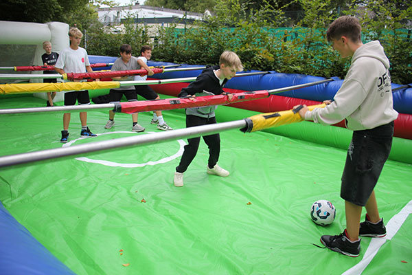 Den jungen Menschen wurde vom Start weg so einiges geboten. Dazu gehörten ein Menschenkicker-Turnier, die Ninja-Warrior-Battle oder auch Spiele wie Fußball-Dart und Torwandschießen. Richtig gut kam auch die Fotoaktion an, an der man sich mit allerhand lustigen Utensilien verkleiden konnte. Natürlich durfte auch das Beachvolleyballfeld genutzt werden – dieses wurde vom der Volleyballclub VC Wiehl 06 betreut. Wer noch ein bisschen Schmuck brauchte oder ein Partyaccessoire, für den hatte das Wiehler Geschäft „Good Mood Accessoires“ einen Stand aufgebaut.
