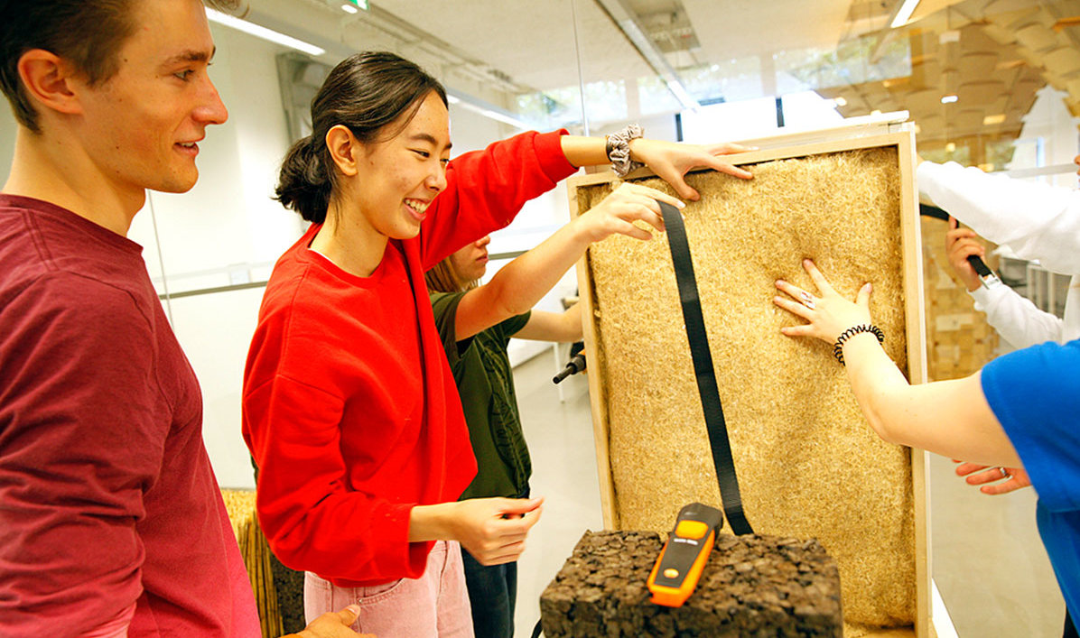 Brune entschied sich für den Themenschwerpunkt Gebäude und stellte am Ende des ersten Blocks mit seiner Gruppe die Forschungsfrage auf: „Behindern Brandschutzaspekte den Einsatz und das Recycling von Dämmstoffen aus nachwachsenden Rohstoffen zum Erreichen des Zwei-Grad-Ziels?“ Gemeinsam mit Professor Dr.-Ing. Karsten Voss, der Bergischen Universität Wuppertal, forscht die Gruppe an der Brennbarkeit unterschiedlicher Dämmmaterialien und beschäftigt sich viel mit der Architektur der Gebäude, die Brandschutzmaßnahmen nötig machen.