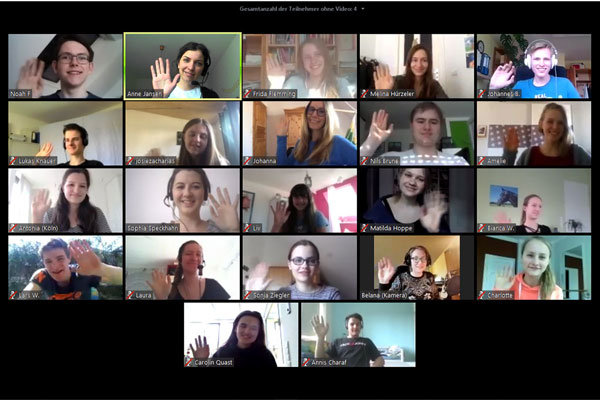[Nils Brune (Reihe zwei, Spalte vier) und seine Mitforscher bei der digitalen Videokonferenz.]