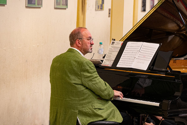 [Musikschulleiter Dr. Dirk van Betteray leitet das Projekt und begleitete die Präsentationen am Flügel.]
