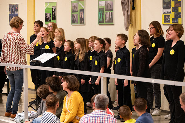 Als Begleitung war diesmal keine Band dabei. Stattdessen übernahm van Betteray dem musikalischen Part am Flügel, während die Kinder der GGS Oberwiehl unter der Leitung von Mira Caputo „Ich brauche kein Orchester“ intonierten. Spaßig wurde es beim „Wenn der Elefant in die Disco geht“, denn dazu gab es natürlich auch die entsprechenden Bewegungen. „Singen spielen, tanzen“ sangen die GGS Drabenderhöher Spatzen unter der Leitung von Regine Melzer und „Wir brauchen keine Worte“.