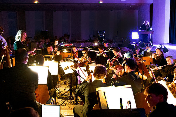 [Die Musik von „Little Women“ ist stilistisch abwechslungsreich – bei den Aufführungen des DBG bereicherten auch einige Ehemalige und Externe das Schulorchester, das von Annette Blecher geleitet wurde.]