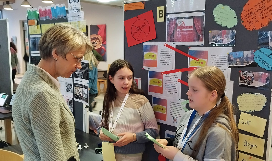 Das erste Projekt, ein Anti-Mobbing-Training initiiert von der Forscherklasse 6c, nutzte die Theatertheorie von Augusto Boal, um Schüler für die Dynamiken und Folgen von Mobbing zu sensibilisieren. Durch interaktives Theater wurden die Schüler der fünften Klassen nicht nur Zuschauer, sondern auch Akteur, die aktiv in die Szenarien eingriffen, um positive Veränderungen herbeizuführen. „Diese innovative Herangehensweise ermöglichte es den Schüler:innen, Empathie zu entwickeln und praktische Lösungen gegen Mobbing zu finden, was die Bedeutung des Projekts für eine gesunde Klassengemeinschaft unterstreicht“, teilte die Schule mit.