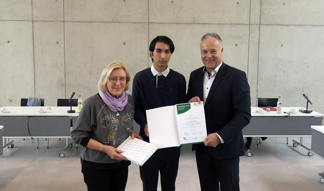 Der 15-Jährige hatte sich beim Freundeskreis Asyl in Waldbröl engagiert, dabei unter anderem geholfen, Bewerbungsgespräche mit Flüchtlingen zu simulieren oder technische Geräte aufzubauen. Er hatte sich gezielt für die Initiative entschieden: „Ich wollte Menschen, die unsere Sprache nicht sprechen, helfen und etwas Gutes tun.“ Der Schüler erhielt neben dem Sozialführerschein von Waldbröls Bürgermeister Peter Köster auch ein kleines Präsent der stellvertretenden Landrätin Ursula Mahler.