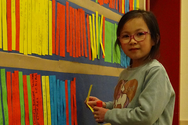 [Nach dem Lesen wird der Buchtitel auf der großen Pinnwand verewigt - Am Ende wird zusammengezählt.]