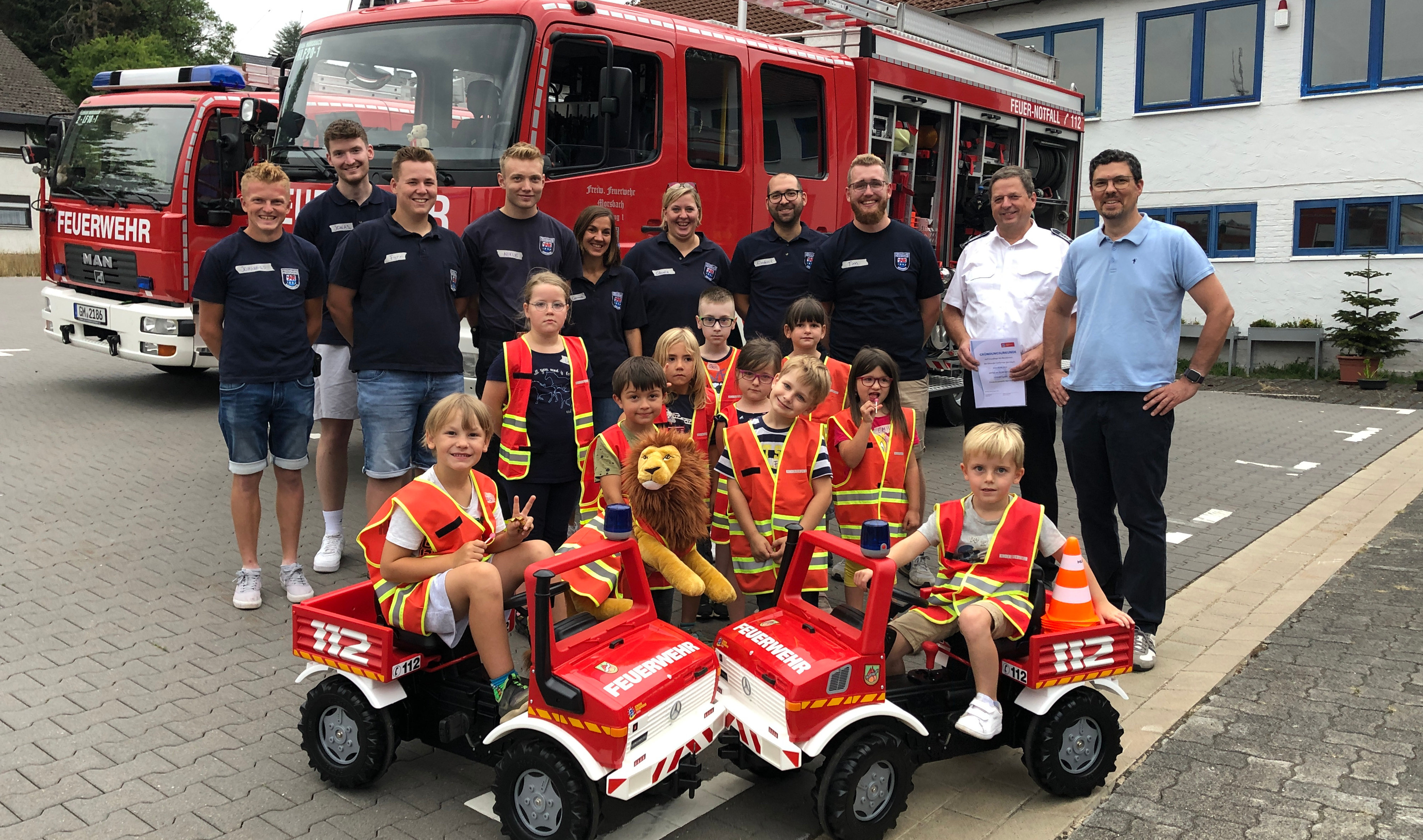 "Es ergibt ein tolles Bild, wenn man die kleinen Helden von morgen sieht. Wir sehen in Morsbach bereits die super Arbeit in der Jugendfeuerwehr, hiermit verlängern wir die Kette des Ehrenamts", so Bukowski, dessen Kinder ebenfalls der Wehr angehören. Seit 2016 ist es gesetzlich möglich, dass Kinder ab dem sechsten Lebensjahr bei der Feuerwehr eintreten. Während zunächst lediglich der Gedanke zum Etablieren einer Nachwuchseinheit gereift ist, dämpfte die Pandemie dann die ersten Gründungsversuche. Im vergangenen Frühjahr wurden die Planungen dann wieder vertieft und im Morsbacher Rat konkretisiert.