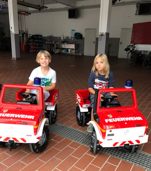 [Vielleicht fahren Lukas (li.) und Nick (re.) in ein paar Jahren die großen Feuerwehrwagen.]