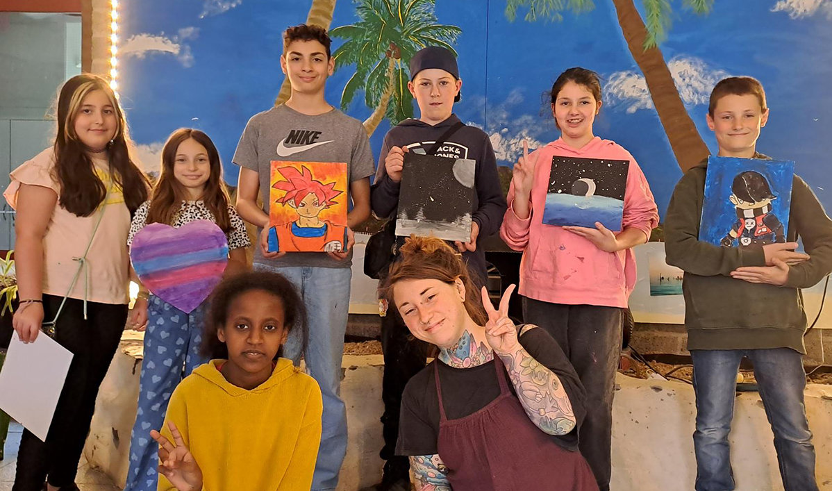 Unter der Leitung der freischaffenden Künstlerin Vanessa Prison entstanden nicht nur einzelne Werke, sondern auch gemeinschaftliche Wandgestaltungen innerhalb der Einrichtung. Neben dem kreativen Arbeiten wurde gemeinsam gekocht, gegessen, Musik gehört und gelacht – auch ein Besuch in einer Eisdiele durfte nicht fehlen. Der zweite Block des Projekts findet vom 14. bis 16. Juli statt. Die Teilnahme ist kostenlos, Anmeldungen sind ab sofort möglich.
