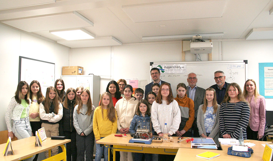 Die Klasse 5b der Leonardo da Vinci-Schule hat heute eine ganz besondere Unterrichtsstunde im Rahmen der ersten Morsbacher Umweltwoche erlebt. In Zusammenarbeit mit der AggerEnergie und der Gemeinde Morsbach wurde das Thema „Energie erleben und verstehen“ auf anschauliche und spielerische Art vermittelt.