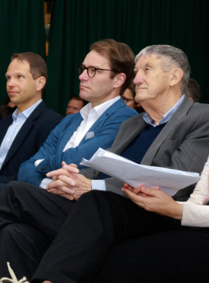 [Unter den Gästen: V. li.: Andree Henkel (Vorstand der Kreissparkasse Köln), Gunter Derksen (Regionalvorstand Kreissparkasse Köln) und der stellvertretende Landrat Prof. Dr. Friedrich Wilke.]
