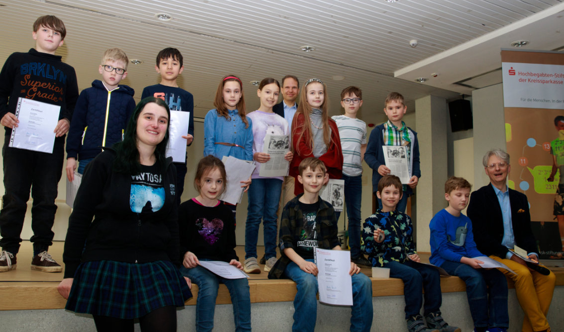 Die Schüler der diesjährigen Kinderakademie der Hochbegabten-Stiftung der Kreissparkasse Köln erhielten am Samstag im Gymnasium Lindlar ihre Zertifikate. Zuvor durften sie das Erlerntes präsentieren. Die erste Gruppe widmete sich ihrem Thema „Chemie“. Die Mädchen und Jungen erzählten anhand eines selbst gebastelten Plakates, dass sie gelernt haben, wie man Kristalle züchtet, Münzen vergoldet sowie Brause-Raketen und Schleim herstellt. Dabei kam es darauf an, die im Chemielabor befindlichen Utensilien richtig und sicher einzusetzen.