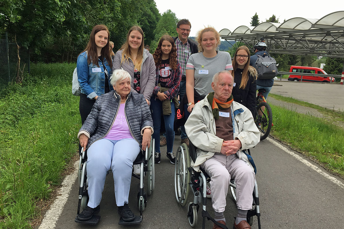 Dass Bildung ohne Herzensbildung nur halb so viel wert ist, konnten die 25 Neunt- und Zehntklässler der Städtischen Realschule Bergneustadt sowie weitere Jugendliche aus den Jugendgruppen des SFKM und der Messdienerschaft Oberberg Mitte erfahren, als sie mit einer großen Anzahl körperlich und geistig behinderter Menschen vom REWE-Parkplatz in Bergneustadt über die alte Bahntrasse nach Wiedenest wanderten.