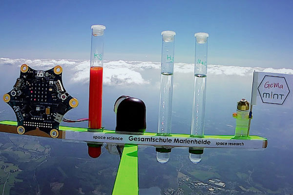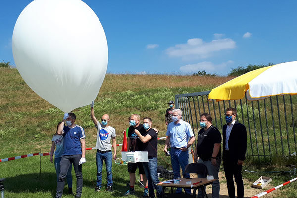 Bei bestem Wetter sollte der mit Helium gefüllte Ballon in knapp drei Stunden bis in etwa 36 Kilometer Höhe gebracht werden. Aufgrund der Corona-Pandemie konnten das Schauspiel deutlich weniger Zuschauer als ursprünglich geplant beobachten. Dennoch waren unter anderem zahlreiche Schüler der MINT-Klassen, einige Eltern und Lehrer anwesend, teilt Schulleiter Wolfgang Krug mit. Mit an Bord waren eine Forschungsbox mit zwei Kameras, die den Verlauf filmten. An Bord des Ballons wurden via Daten-Logger Messergebnisse zu Temperatur, Luftdruck und Luftfeuchtigkeit gespeichert. Darüber hinaus gab es Außenexperimente im Blickfeld einer der beiden Kameras: An einem angeklebten Schokokuss sollte getestet werden, ob er dem Druck nachgegeben hat oder ob er gefroren ist.
