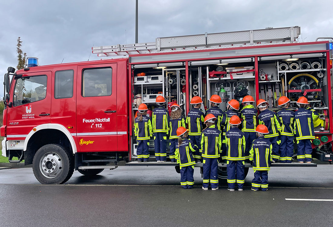 Bevor Müller im Januar bei der Stadt zum dritten hauptamtlichen Feuerwehrangestellten wurde, war er 23 Jahre Heilerziehungspfleger bei der BWO. Einen pädagogischen Unterbau bringt er also ebenso mit wie drei Jahrzehnte Feuerwehrerfahrung im Ehrenamt. Sein Auftrag war klar definiert: Er sollte in Wiehl die Kinderfeuerwehr einrichten. Ihr Name: die „Wiehler Feuerdrachen“.