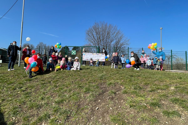 In AWO-Kitas beteiligt man sich an den Aktionswochen gegen Rassismus. Im Familienzentrum Helene Simon in Reichshof-Eckenhagen wurde zunächst das „WIR-Gefühl“ der Kitagruppe gestärkt. Die Kinder lernten das „kleine WIR“ kennen, eine Geschichte über Zusammenhalt und Wertschätzung anderer und das gute Gefühl, das dadurch entsteht. Auf spielerische Art und Weise wurde so der Fokus darauf gelegt, zu lernen, dass alle Menschen verschieden sind, aber dennoch gleichwertig. Auch wurde gemeinsam ein Globus betrachtet, so haben die Kinder erfahren, dass es viele verschiedene Länder und Kulturen gibt. Passend dazu entwickelten die Erzieher zusammen mit den Kindern den Slogan „Wir sind alle ganz verschieden, trotzdem glücklich und zufrieden!“. Um der bunten Vielfalt Ausdruck zu verleihen, bastelten sie ein Transparent mit Handabdrücken der Kinder und ließen gemeinsam mit den Familien Luftballons in den Himmel steigen.