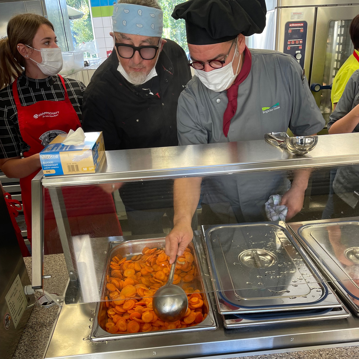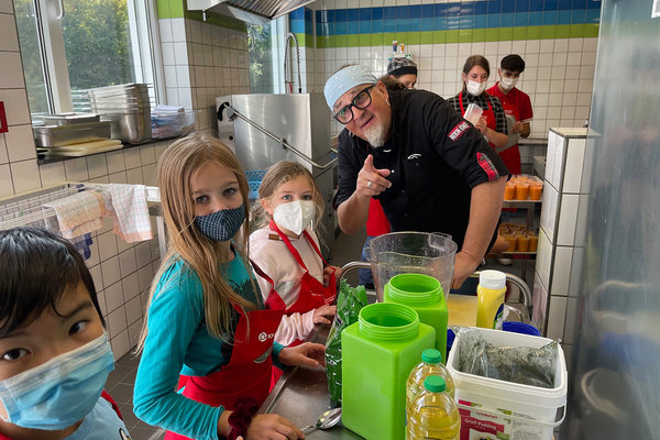 Bereits am Tag zuvor hatte man das Catering-Team, das bis zu 2.000 Essen täglich auch für andere Abnehmer produziert, mit den nötigen Tricks und Kniffen versorgt, die „Bock auf frische und gesunde Küche“ machen sollten. „Da Fleisch und Gemüse durch unsere Zubereitung kaum Volumen verlieren, spart man am Budget“, verriet der Sternekoch. Das Konzept wird auch deswegen künftig am Schulzentrum Walbach angewandt. Das Experiment, gesundes und frischen Essen Kindern schmackhaft zu machen, ist offensichtlich auf ganzer Linie geglückt.