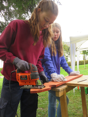 Im Rahmen des „mach Grün!-Workcamps“ „Green Building For Future“, übernachteten 19 Jugendliche im Alter von 14 bis 17 Jahren eine Woche lang in der Museumsherberge des LVR-Freilichtmuseums in Lindlar. Tagsüber wurde im Garten „Essbares Lindlar“ gearbeitet. Hier entstanden Projekte wie das „Tippy Tap“ (eine selbstgebaute Händewaschanlage), eine Kompostumrandung aus alten, aber optisch aufgewerteten Paletten, ein Arbeitstisch und eine Sitzbank. Die benötigten Werkzeuge wurden von Michael Thielen vom Verein für Soziale Bildungsarbeit (VSB) und Tischlermeister Jürgen Flemming zur Verfügung gestellt. Alle Projekte entstanden für das Gartenprojekt „Essbares Lindlar“.