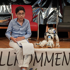 [Noah Nasimzadah und Roboter NAO führten sehr originell und schlagfertig durch die Veranstaltung.]