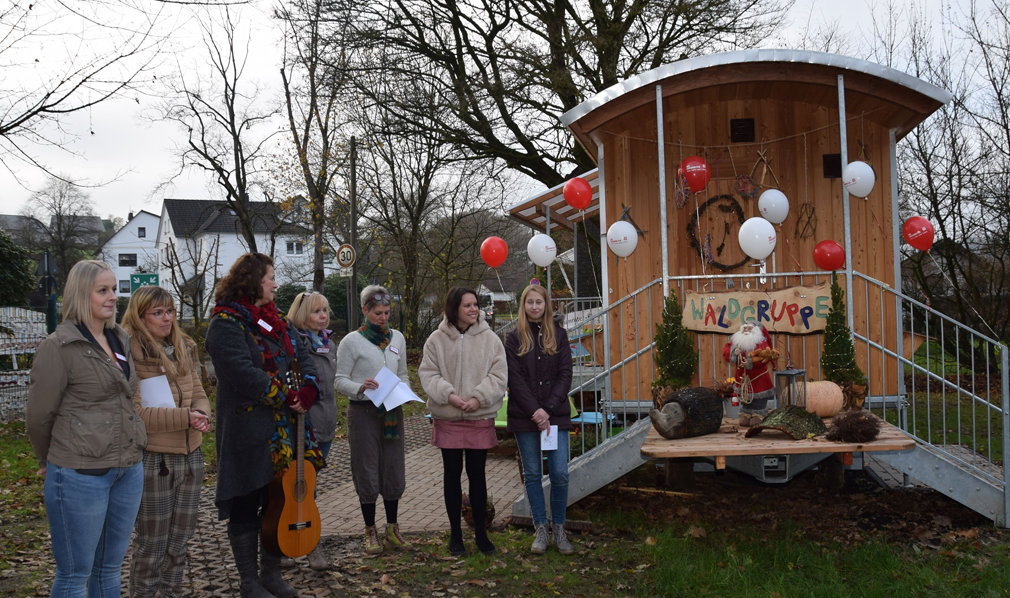 Die neue Waldgruppe der als Kneipp-Kindergarten zertifizierten Johanniter-Kita Grötzenberg aus Nümbrecht wurde bei einem „Tag der offenen Tür“ eingeweiht. In ihr werden bis zu 20 Kinder im Alter ab drei Jahren betreut. Verantwortlich für die Waldgruppe sind die Erzieherinnen Claudia Mittler und Bärbel Opel. „Die Kinder lernen in der Natur mit allen Sinnen und werden dabei ganzheitlich auf die Schule vorbereitet“, so Kita-Leiterin Sigrid Hausmann. Einige Kinder sind bereits vom Haus in die neue Waldgruppe umgezogen.