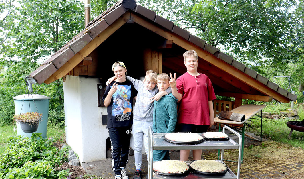Zutaten auswählen, eine Pizza selber belegen und anschließend dick mit Käse bestreuen – das macht Jung und Alt gleichermaßen Spaß. Davon konnte man sich kürzlich bei der „HBW Heimat. Begleitung. Wohnen.“ überzeugen. Die Rentner im Haus Am Konradsberg hatten die inklusive Ferienbetreuung des Vereins „Lebenspfade Oberberg“ zu Gast. In lebhafter Runde bereiteten die jungen und alten Leute ihr gemeinsames Mittagessen vor, halfen beim Ausbacken der Pizzen im hauseigenen Backes und ließen es sich gemeinsam schmecken.