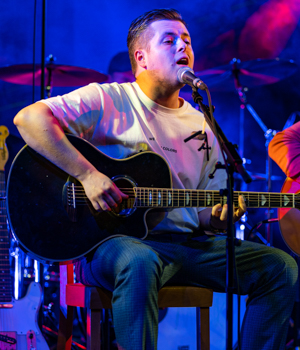 Ben Krause (Foto) und Lotte Kottmann brachten als Solokünstler einen Mix aus Rock, Pop, Blues und Musical auf die Bühne, während Simon Hardt mit einem weltmusikalisch geprägten Auftritt an Gitarre, Handpan und Didgeridoo begeisterte. Die junge Band „Odonata“, die zuvor noch unter anderem Namen spielte und sich aus vier Schulfreunden zusammensetzt, hatte ihren dritten Auftritt, bei dem sie mit einem abwechslungsreichen Set überzeugte. Dass „Lost Keys“, die als Opener beim diesjährigen Open-Air-Festival am Rathausplatz auftraten, nur in halber Besetzung da waren, merkte man kaum: Mit ihrem „Unplugged“-Auftritt sorgten sie für gute Stimmung unter den Zuhörern.