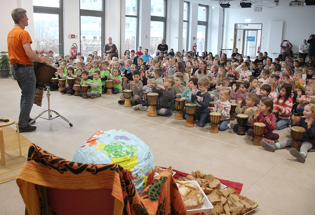 Gummersbach - Heute begaben sich rund 250 Vorschulkinder aus 14 verschiedenen Kitas von Friesenhagen bis Frielingsdorf auf eine Trommelreise um die Welt – Damit starteten sie die Aktion „Solibrot“.