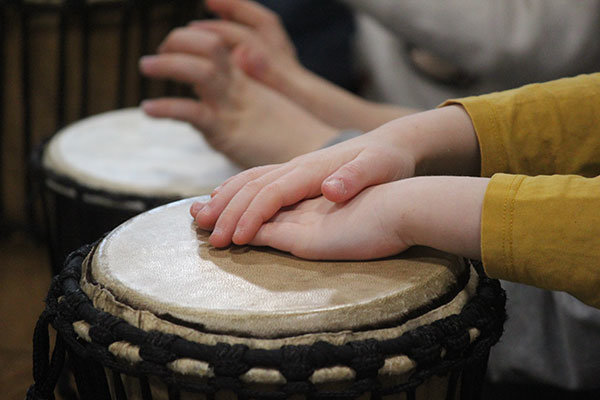 Doch bevor gebacken wird für den guten Zweck, begaben sich am Freitagmorgen die Kinder aus Kitas von Friesenhagen bis Frielingsdorf mit dem Musiker und Theaterpädagogen Markus Hoffmeister gemeinsam auf eine gedankliche Reise nach Ostafrika. Damit es ordentlich laut wurde, stellte Hoffmeister für alle Teilnehmer Trommeln aus Ghana zur Verfügung, auf denen der Saal spielerisch und musikalisch zum Klingen gebracht wurde.