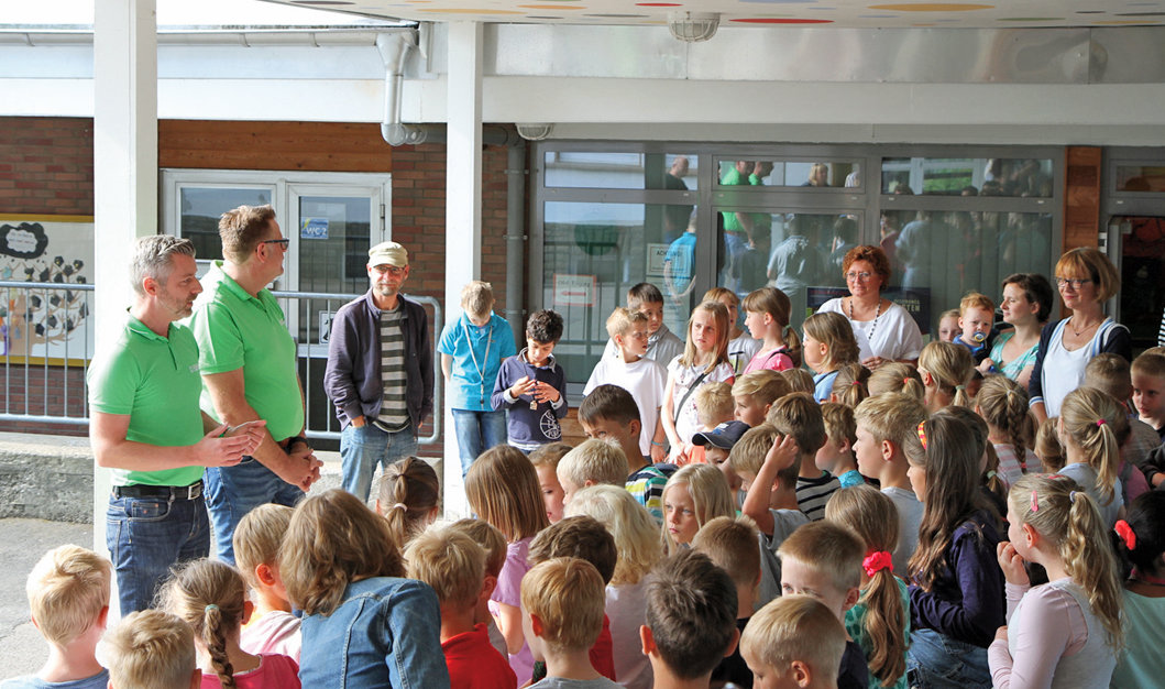Die Bilder und die Idee kamen so gut an, dass durch die vielen verkauften Bildern ein Erlös von insgesamt 1.600 € erzielt wurde. So konnten sich dann alle 15 Kindergärten im Gemeindegebiet und die GGS Schmitzhöhe freuen. Jedem der Kitas wurde ein Mal-Set, bestehend aus Pinseln, Farben und vielem mehr, sowie der Grundschule mehrere Sets Künstler-Pastellkreide durch den KiJu überreicht. Martin Lenzer übergab die Utensilien gemeinsam mit den Vertretern des Fördervereins, Mischa Kolpacki und Bernhard Rappenhöner, in der Grundschule und den beiden Kindergärten in Schmitzhöhe.